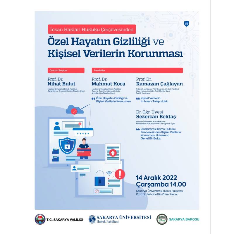Fakültemizde 14 aralık 2022 Çarşamba 14.00 da Sabahattin Zaim Konferans Salonunda "İnsan Hakları Hukuku Çerçevesinden Özel Hayatın Gizliliği ve Kişisel Verilerin Korunması" adlı Panel gerçekleştirilecektir. İlgili afiş ekte sunulmuştur.
