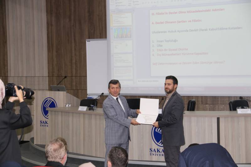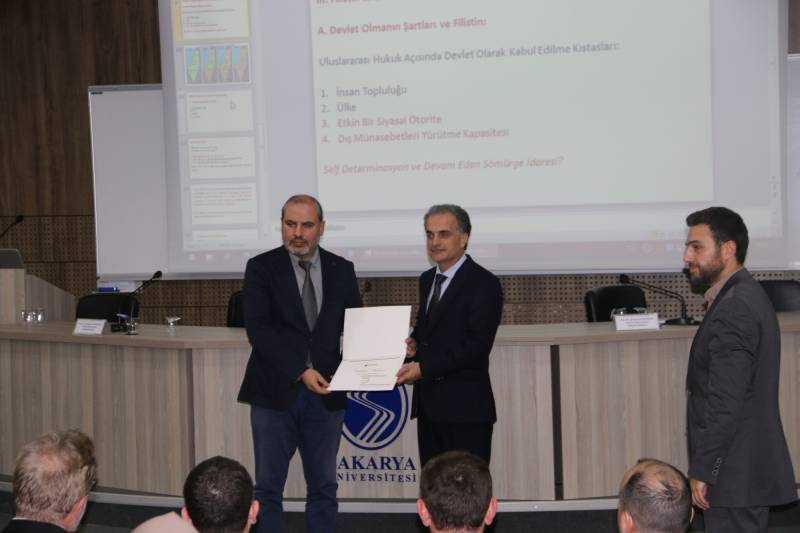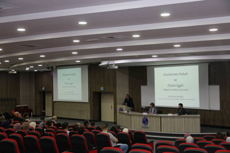 Prof. Dr. Şafak Narbay moderatörlüğünde, Yalova Üniversitesi Hukuk Fakültesi Milletlerarası Hukuk Anabilim Dalı Öğretim Üyesi Doç. Dr. Ali Osman Karaoğlu ve Doç. Dr. Ali Kerem Kayhan katılımıyla yapılan "Uluslararası Hukukta Filistin Meseleleri" konulu programımıza Üniversitemizin Rektörü Sayın Prof. Dr. Hamza Al başta olmak üzere akademisyenlerimiz ve öğrencilerimiz katılım sağlamıştır.
