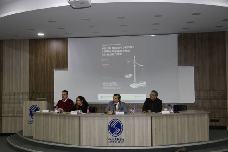 Sakarya Üniversitesi Hukuk Fakültesi tarafından Prof. Dr. Şafak Narbay moderatörlüğünde, Marmara Üniversitesi Hukuk Fakültesi Medeni Hukuk Anabilim Dalı Öğretim Üyesi Prof. Dr. İpek Sağlam, Prof. Dr. Burak Özen ve Sakarya Üniversitesi Hukuk Fakültesi Medeni Hukuk Anabilim Dalı Doç. Dr. Sinan Okur katılımıyla yapılan “Doç. Dr. Mustafa Ünlütepe Anısına Armağan Panel ve Takdim Töreni”ne Doç. Dr. Mustafa Ünlütepe’nin eşi Av. Canan Ünlütepe ve Sakarya Barosu Başkan Yardımcısı - Sakarya Üniversitesi Hukuk Müşaviri Av. Gülşah Baş Duran başta olmak üzere akademisyenlerimiz ve öğrencilerimiz katılım sağlamıştır.
