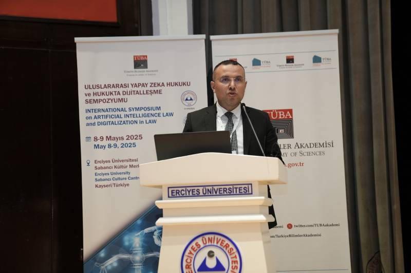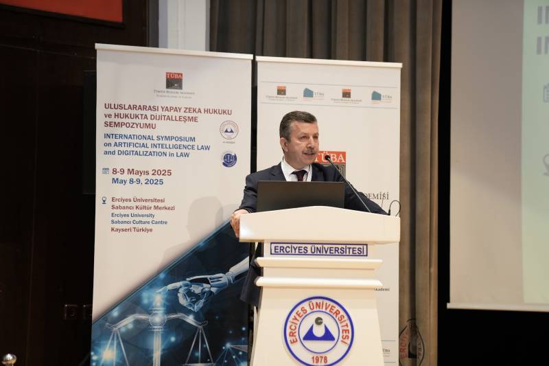 Fakültemiz Dekanı Prof. Dr. Şafak NARBAY, Medeni Hukuk Anabilim Dalı Öğretim Üyelerimiz Doç. Dr. Sinan OKUR ve Dr. Öğretim Üyesi Kemal ERDOĞAN 8-9 Mayıs 2025 tarihlerinde TÜBA tarafından düzenlenen ve Erciyes Üniversitesi ev sahipliğinde gerçekleşen “I. Uluslararası Yapay Zekâ Hukuku ve Hukukta Dijitalleşme Sempozyumu”na katılmışlardır. Sempozyumun Düzenleme Kurulunda görev alan Fakülte Dekanımız Prof. Dr. Şafak NARBAY, Sempozyumun açılış konuşmaları bölümündeki konuşmasından sonra Sempozyumun III. Oturumuna başkanlık yapmıştır. Öğretim Üyelerimiz Doç. Dr. Sinan OKUR ve Dr. Öğr. Üyesi Kemal ERDOĞAN da Sempozyumda ayrı ayrı Tebliğ sunmuşlardır. Ulusal ve uluslararası bilim insanlarının katıldığı Sempozyum yapay zeka hukuku ve hukukun dijitalleşmesine yönelik alanında Ülkemizde gerçekleşen ilk bilimsel etkinliklerden biri olma özelliğini taşımaktadır.