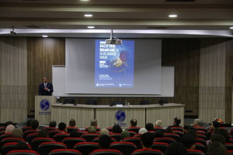 Sakarya Üniversitesi Hukuk Fakültesi tarafından düzenlenen “Gazze’deki İnsani Kriz ve Uluslararası Hukuk” konulu konferans, 27 Ekim 2025 Pazartesi günü Sabahattin Zaim Konferans Salonu’nda gerçekleştirildi.